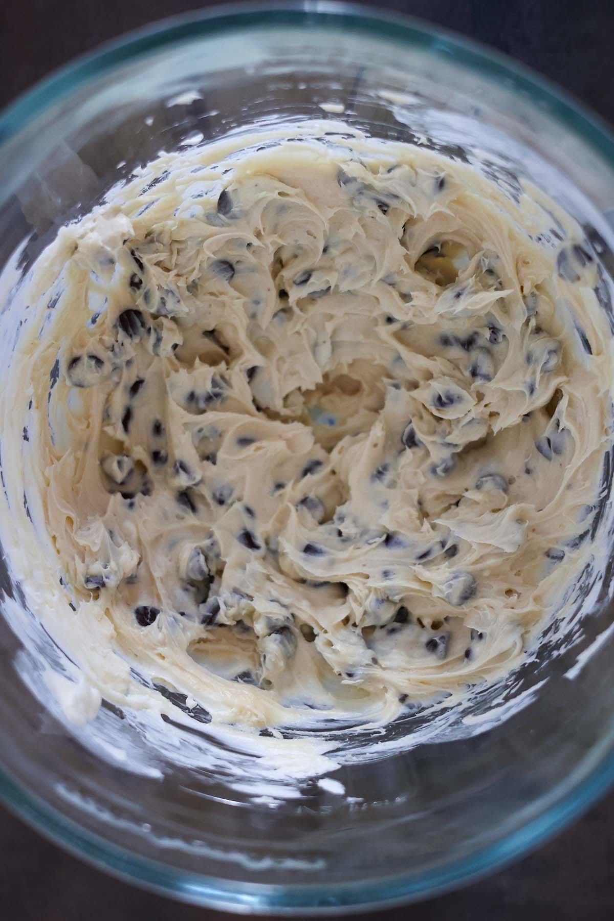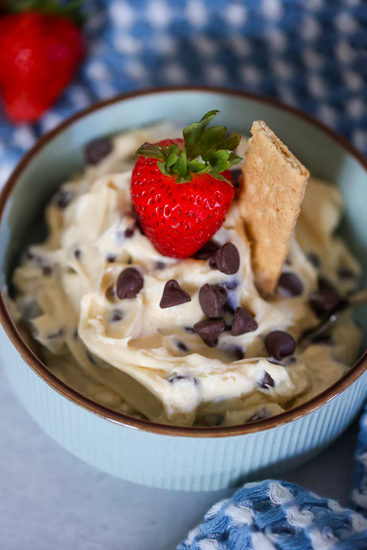This dip is loaded with semi-sweet chocolate chips, but feel free to add sprinkles or the mix-ins of your choice! I highly recommend serving this at room temperature.