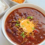 This homemade chili is hearty and rich - it's the perfect comfort food for a cold winter night. Serve with sour cream, cheddar cheese, and scallions for the ultimate win!